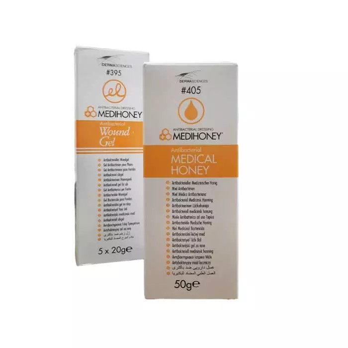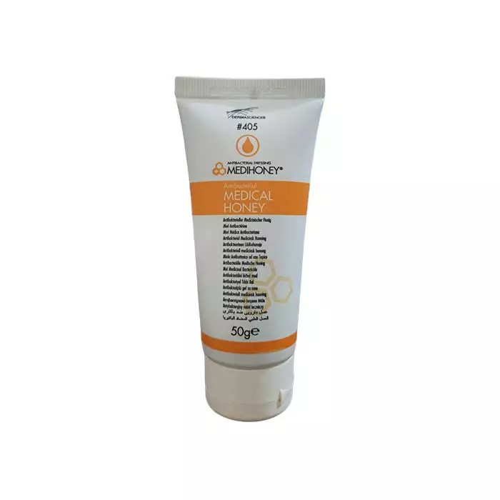 پماد عسل آنتی باکتریال 405 مدی هانی محتوی 100% عسل لپتواسپرموم اسکوپاریوم (مانیوکا) میباشد. این پماد که دارای PH پایین و اسمولاریته بالا میباشد، با خاصیت آنتی باکتریالی بالا در برابر طیف گسترده ای از سوش های مقاوم مانند MRSA،VRE، قارچ ها و… به همراه حفظ رطوبت ایده آل محیط زخم، نقش موثری در بهبود ایفا میکند.