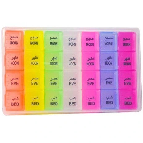 بسیاری از افراد داروها را در کابینت های دستشویی یا حمام نگهداری می کنند. این شرایط بدترین شرایط نگهداری داروها می باشد، چرا که داروها را در معرض دما و رطوبت بالا قرار می دهد و این شرایط باعث تجزیه و فساد داروها می شود. داشتن یک جعبه ی مخصوص دارو به خصوص در زمانی که باید داروهای مختلف در زمان بندی های مشخصی مصرف کنیم، کمک بسیار می کند. ظرف دارو این امکان را فراهم می کند تا داروها را طبق دستور پزشک در زمان مناسب و دقیق مصرف نمایید. هر ظرف دارو به چهار بخش کاملا مجزا (صبح، ظهر، عصر، شب) تقسیم شده است. در محفظه ی نگهدارنده نیز هفت بخش مجزا (شنبه تا جمعه) تقسیم بندی شده است تا بتوانید قرص هایتان را بنا به روزهای هفته و زمان های مختلف در روز میل نمایید. مجزا بودن جعبه های قرص این امکان را به شما می دهد که هم به صورت روزانه و هم به صورت هفتگی از آن استفاده نمایید.